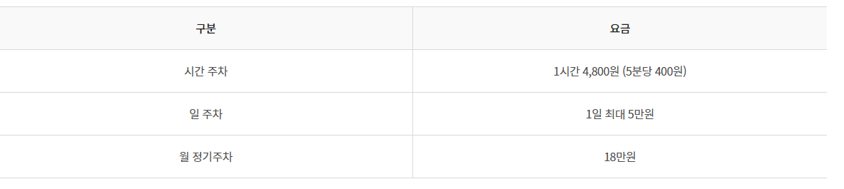 2. 기본요금: 5분 400원, 1시간 4,800원/ 최대요금 50,000원