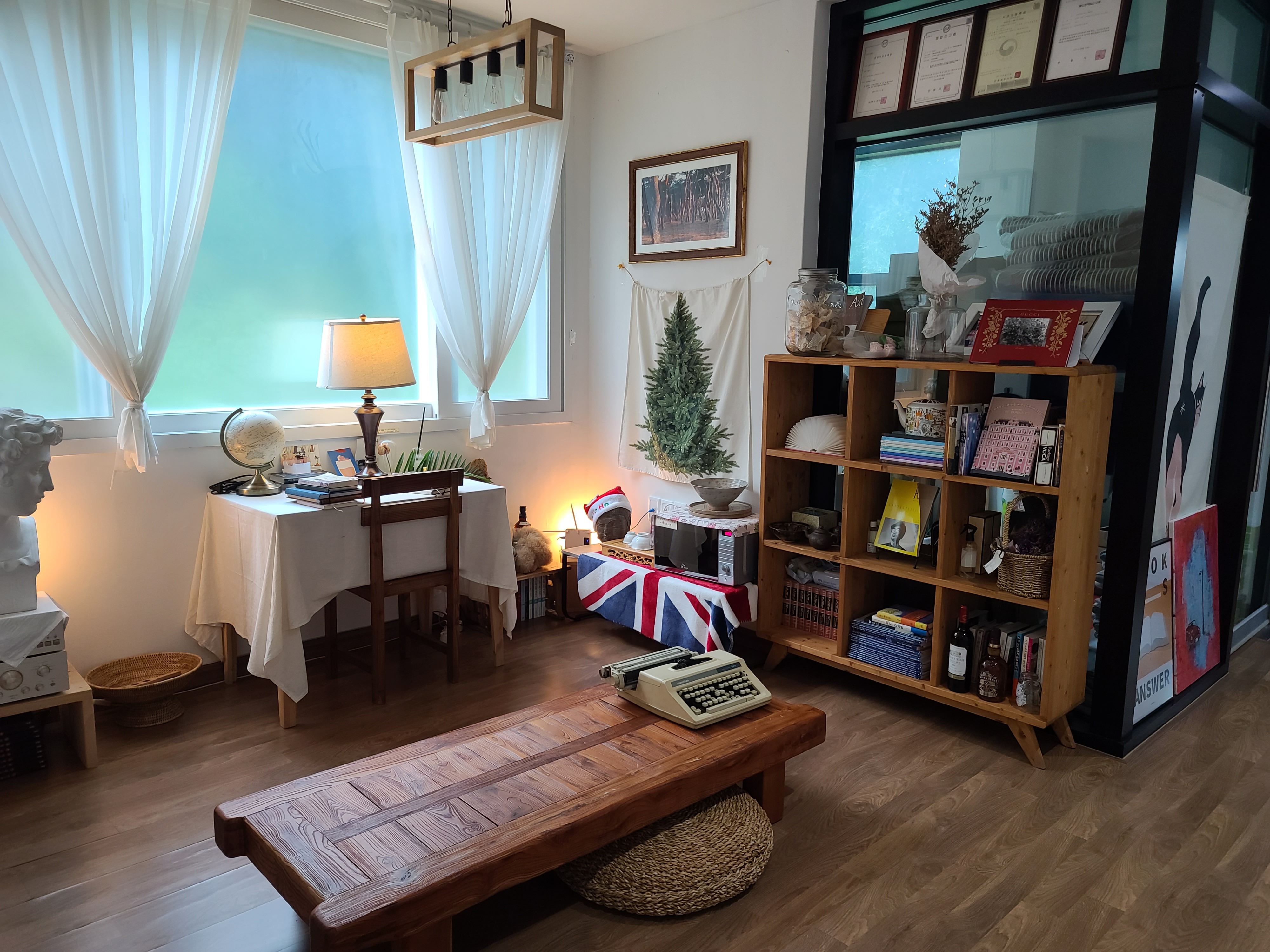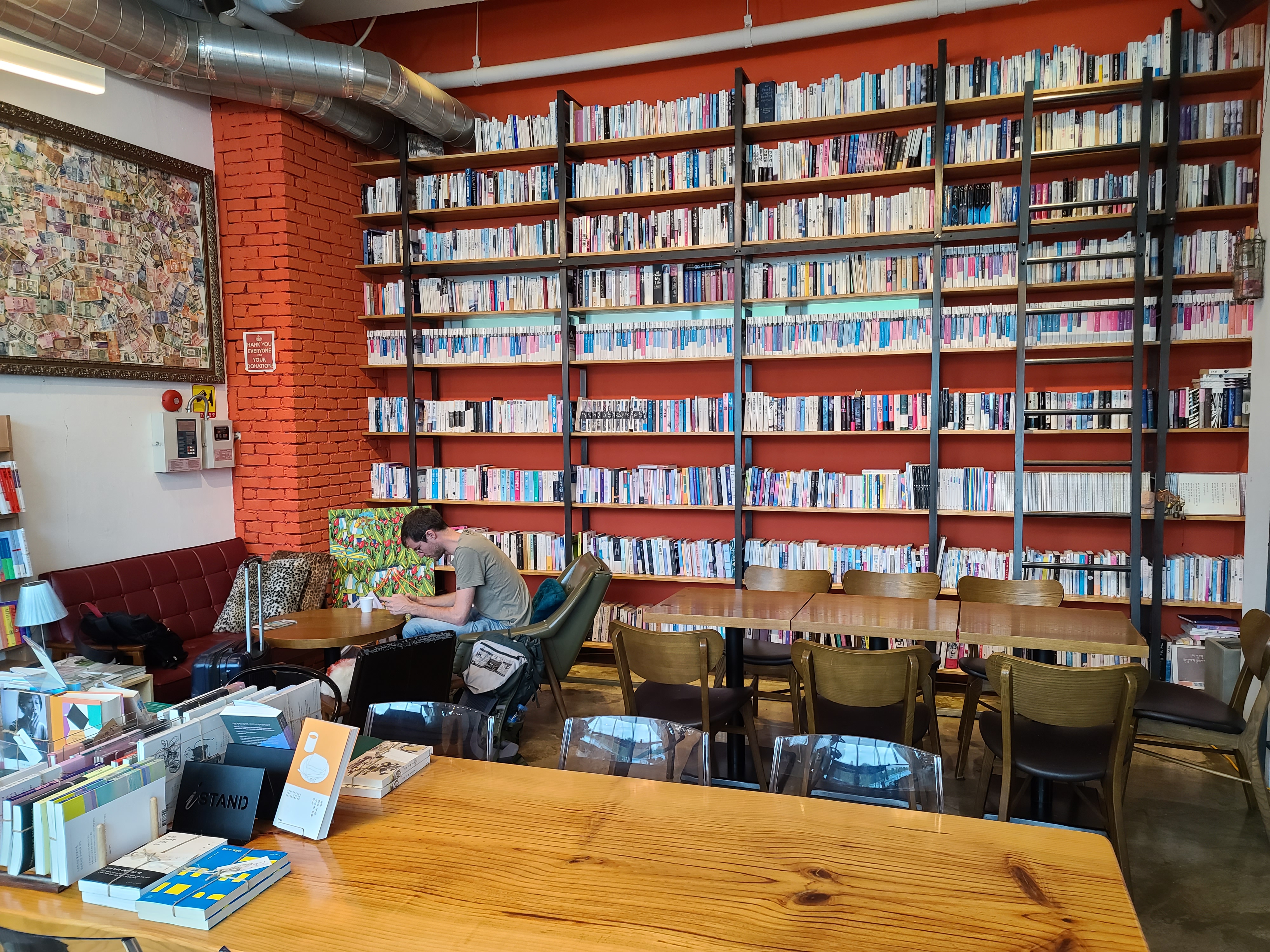 여행지에서 온 소품들이 한켠을 장식하고 있었다. 사장님이 책과 여행을 사랑하는 분이신 듯.